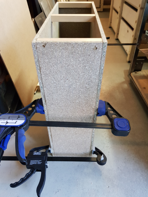 Hier sieht man, dass die 2. Schublade noch nicht fertig montiert ist. Hatte leider beim ersten Mal ein Paar Schienen zu wenig bestellt und musste dann nochmal nachbestellen.