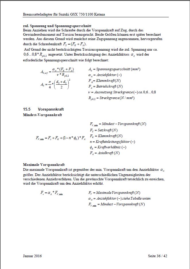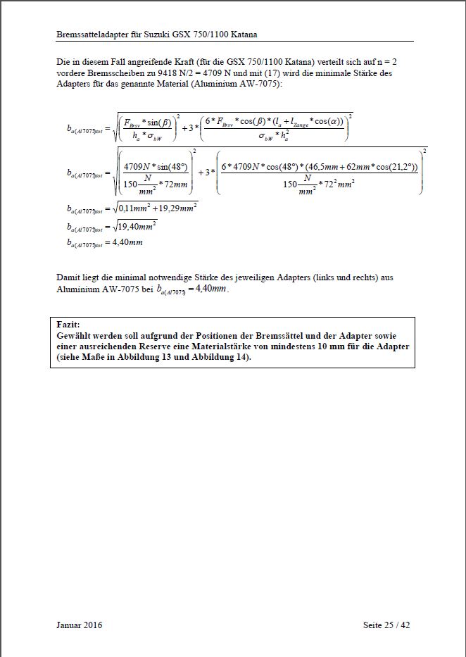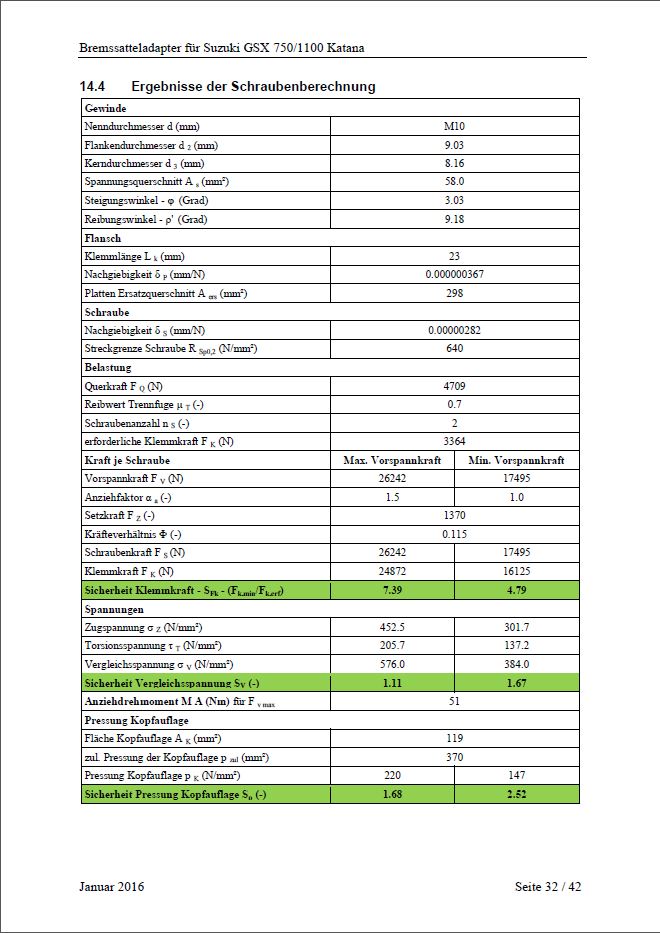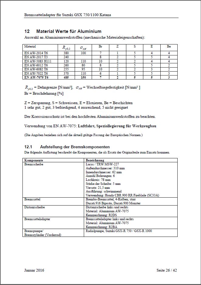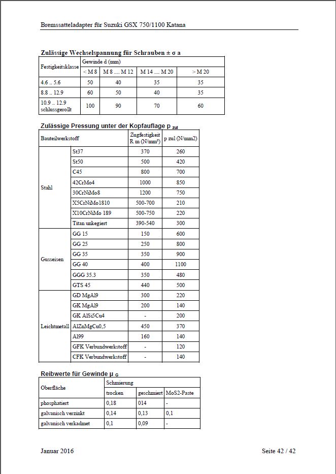 Berechnungen für TÜV (aufgrund fehlender ABE)
