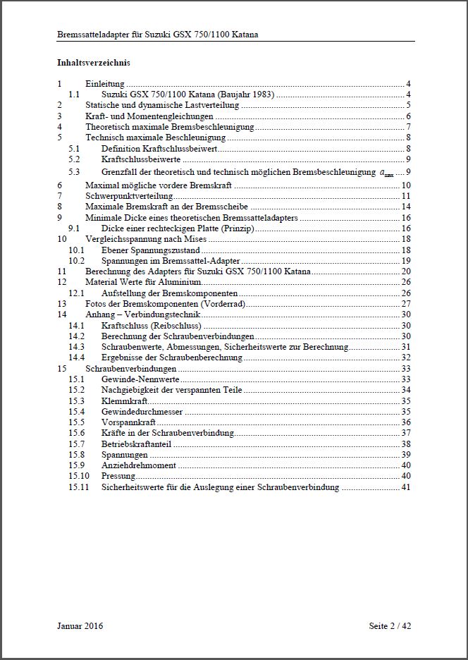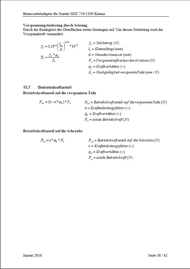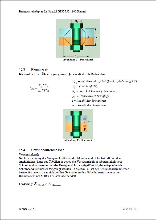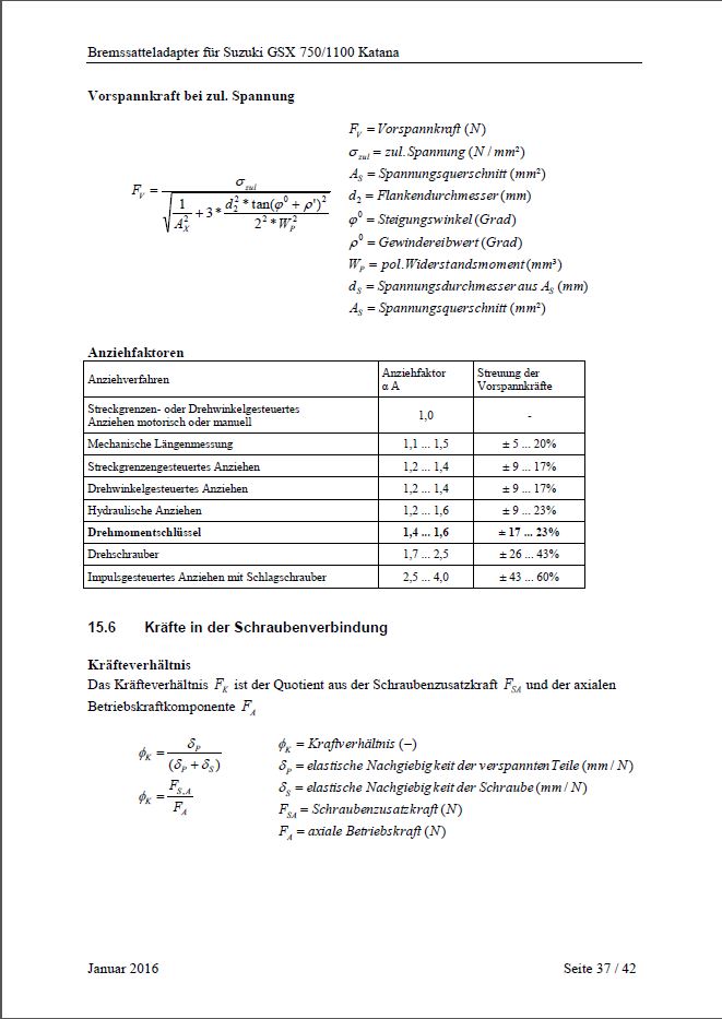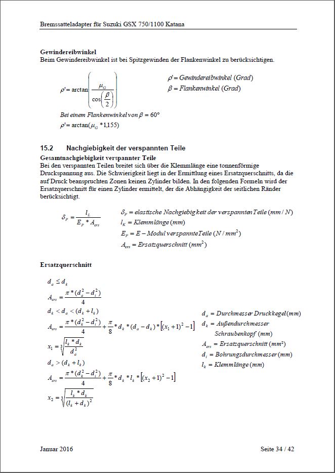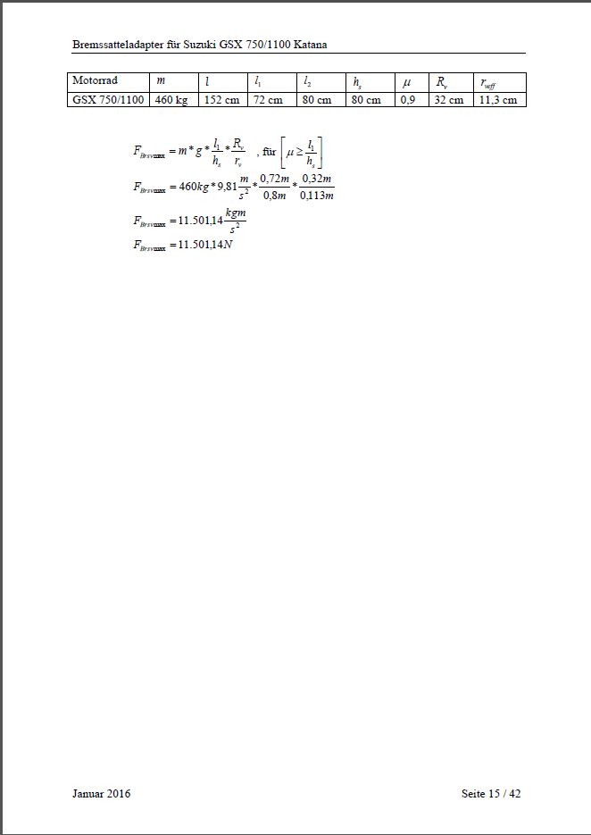 Berechnungen für TÜV (aufgrund fehlender ABE)