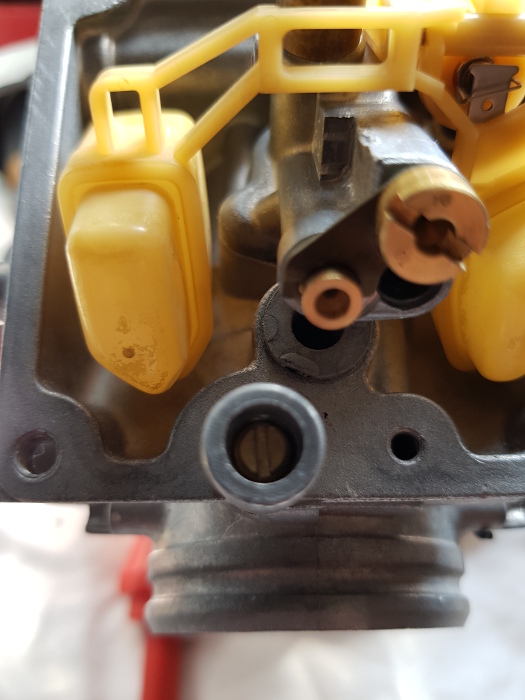 Wer aufgepasst hat, dem fällt sofort auf, dass hier noch die Verschlussschraube der Schwimmerkammer (unten links) fehlt. Die hatte auch ein Vollbad und muss noch eingeschraubt werden.