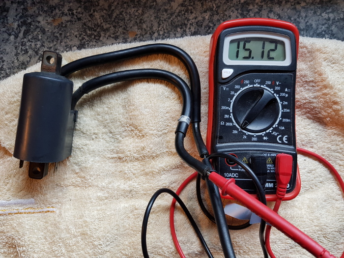 Die Sekundärspule sollte zwischen 11 und 18 kOhm liegen (hier 15,12 kOhm).