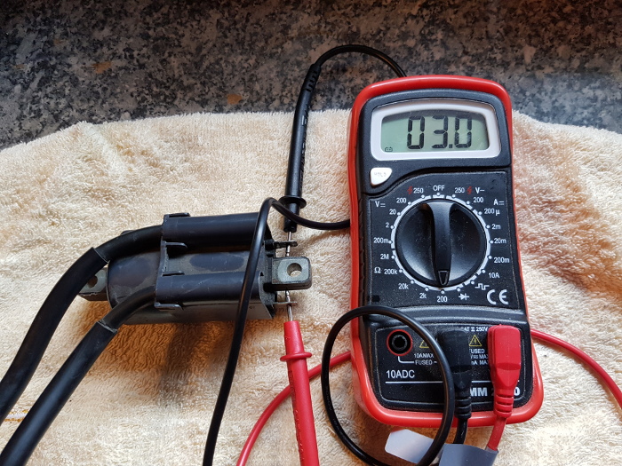 Die Primärspule sollte bei 2,8 bis 3,3 Ohm liegen (hier 3 Ohm)