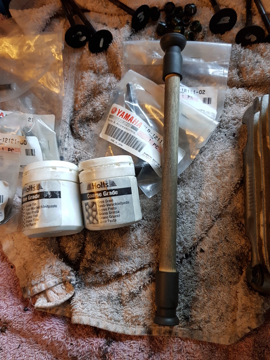 Vor dem Einschleifen jedoch noch ein kleiner Exkurs. Neue Ventile liegen aufgrund der Apothekerpreise von Yamaha in Deutschland bei 50 - 60 Euro pro Stück. Daher habe ich die Ventile direkt in den USA bestellt bei einem Preis von 18 - 20 $ pro Ventil. Trotz Versand, Zoll (Trump lässt grüßen) und Einfuhrsteuer lag ich für alle Ventile immer noch bei weniger als der Hälfte des Preises.