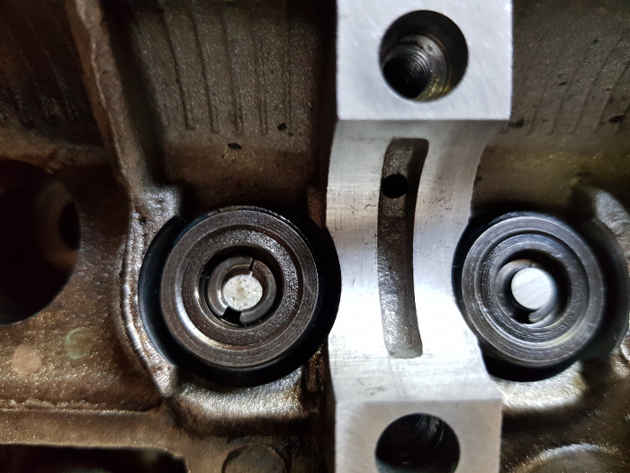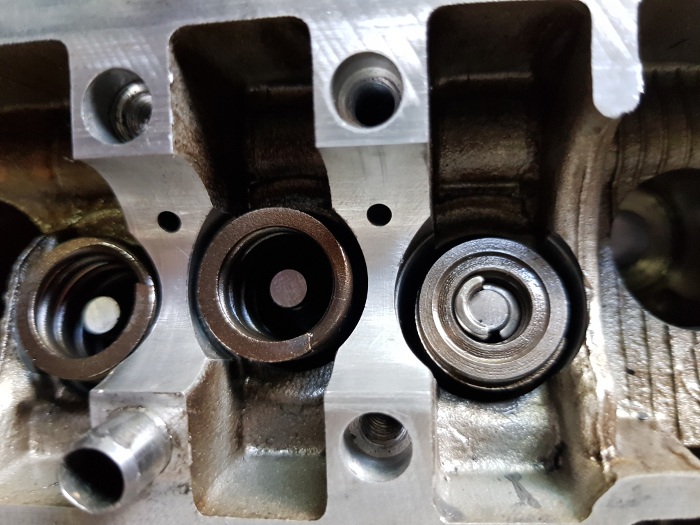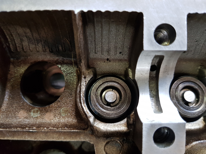 Beim nächsten Arbeitsschritt wird es wieder etwas "Fummeliger". Die Ventilschaftdichtungen müssen in die Führungskanäle der Stößel eingesetzt werden und zwar so, dass sie fest einrasten, die Kanäle dabei nicht beschädigt werden und vor allem auch die Ventilschaftdichtungen nicht kaputt gehen.