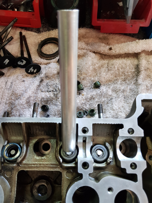 Die einfachste Möglichkeit: Mit einer Spitzzange die Ventilschaftdichtungen aufsetzen und dann mit dem Finger (mit Gefühl) auf die Ventilführung aufdrücken. Wie gesagt Gefühl ist hierfür auch gefragt, damit die Dichtung nicht nach unten in die Kanäle fällt.