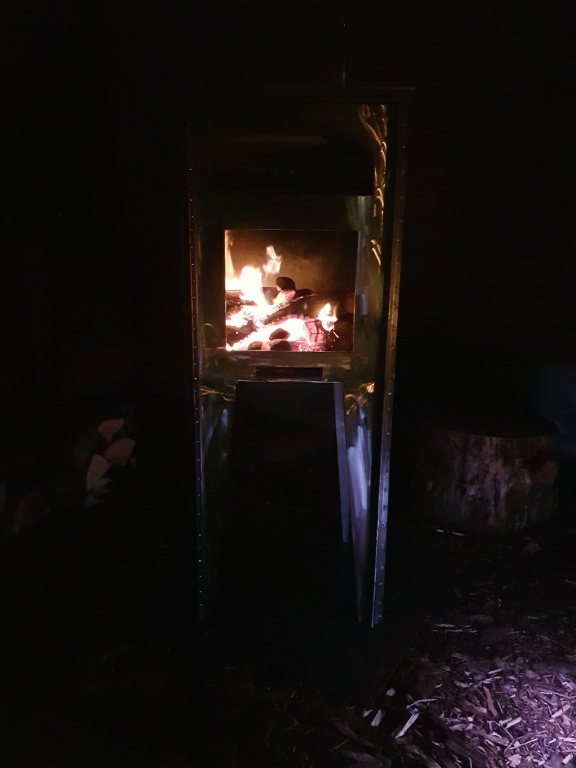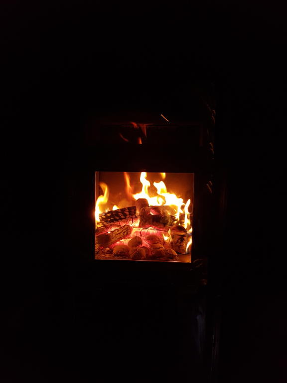 Die erste Feuertaufe hat der Ofen super absolviert. Ich hatte noch bedenken, ob der Durchmesser der Löcher im Brennrost groß genug waren und der Ofen genug Luft ziehen kann - bei geschlossener Platte.