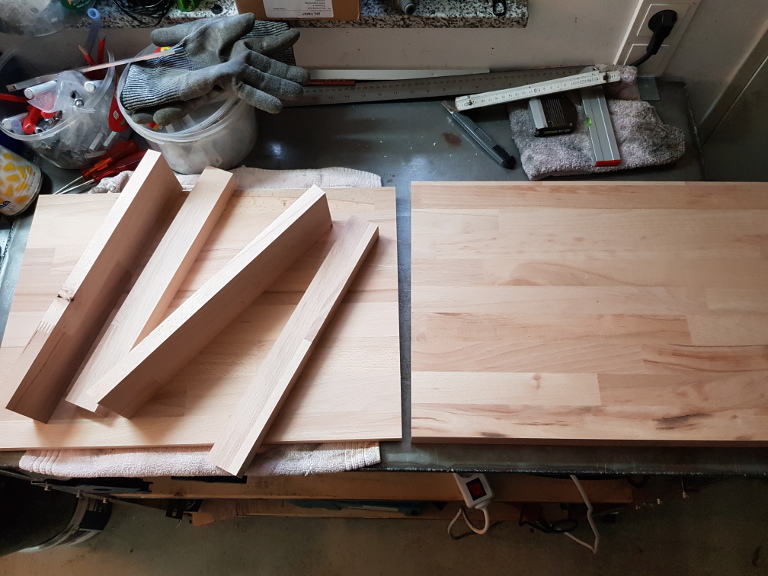 Die Einzelteile habe ich mir im Baumarkt alle auf die entsprechenden Maße schneiden lassen. Damit waren keinerlei Säge-Aktivitäten mehr notwendig.