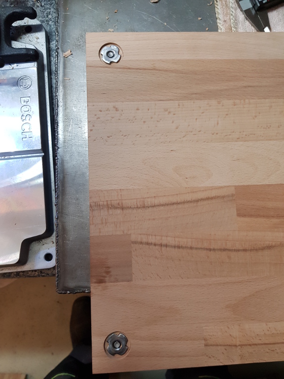 In dem oberen Bild sieht man ganz gut die bereits angesprochenen "Vorbohrungen" für die Einschlagmuttern. Im unteren Bild dann die eingeschlagenen Muttern.