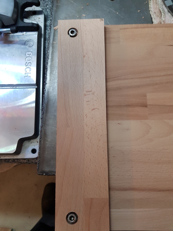 Abstandsleiste (27mm) zwischen Arbeitsplatte und der verschraubten Leiste (18mm). Diese Leiste wird entsprechend mit der 18mm Leiste verschraubt.