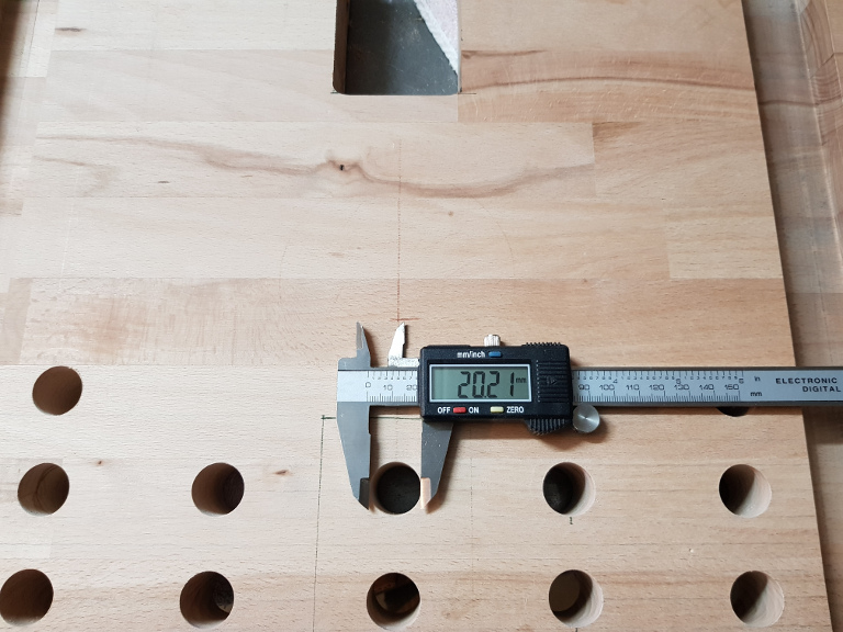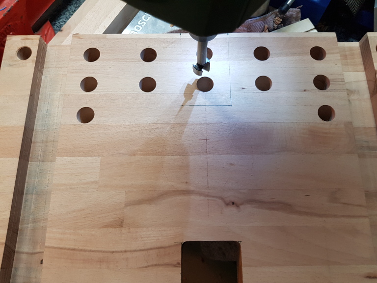 Die Bohrungen wurden mit einem Forstnerbohrer (20mm) gemacht