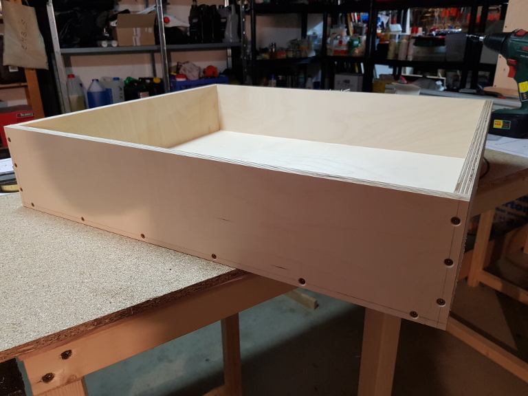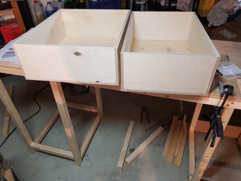 Auch die tieferen unteren Schubladen sind fertig, bis auf die Blenden, aber die kommen ja erst am Schluß.