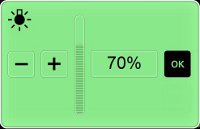 Die Lampen mit den Bezeichnungen "Essen Kamin" und "Essen Pfeiler" sind individuell dimmbar. Der Balken nebem dem Lampen-Symbol zeigt den Dimmwert. Über Anklicken kann mittels eines PopUp-Fensters das Licht eingestellt werden.